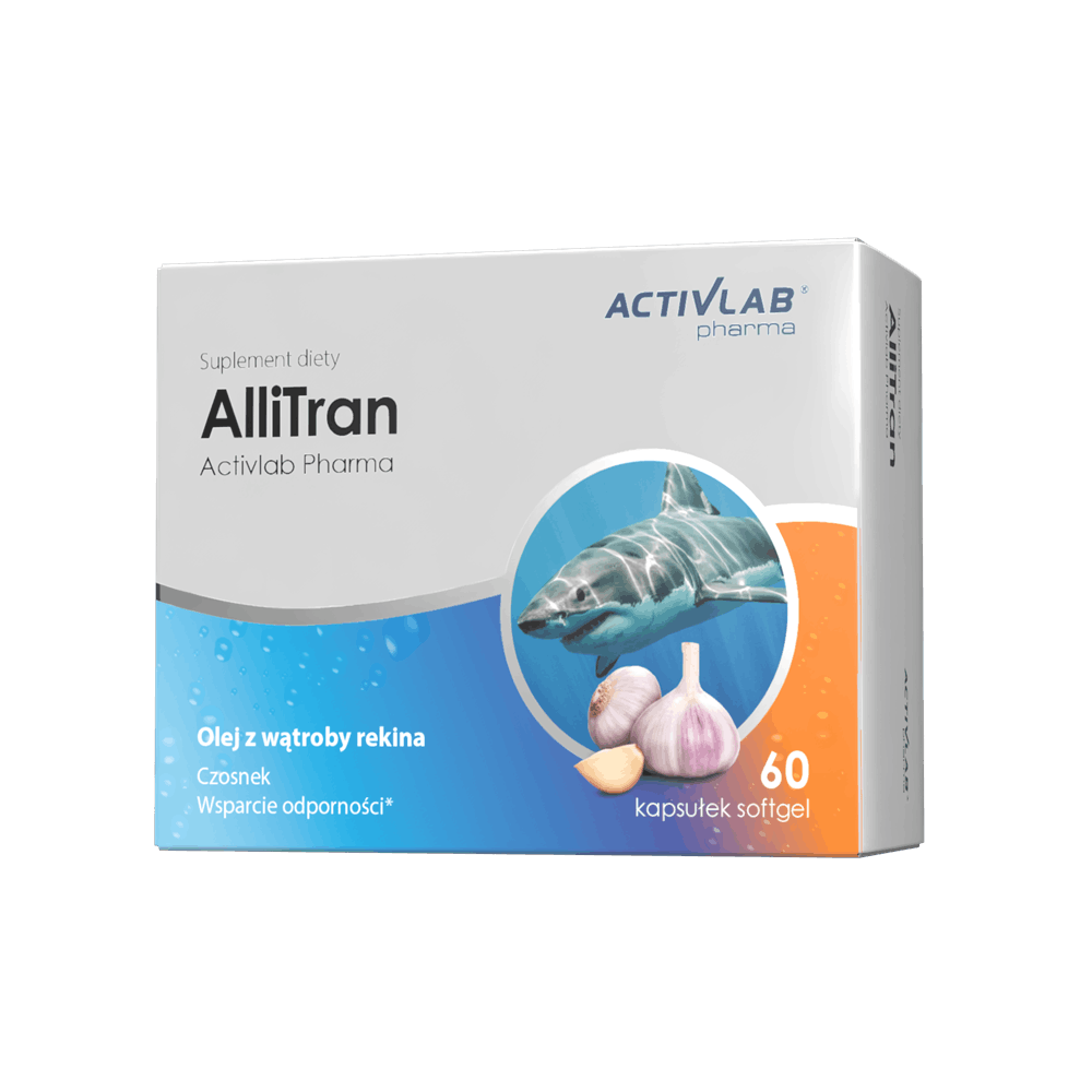 Shark liver oil containing 20% alkylglycerols and 2% squalene; capsule shell (pork gelatin, humectant: glycerol), garlic bulb extract (Allium sativum L.) DER 200:1, vitamin D (cholecalciferol) in MCT oil.