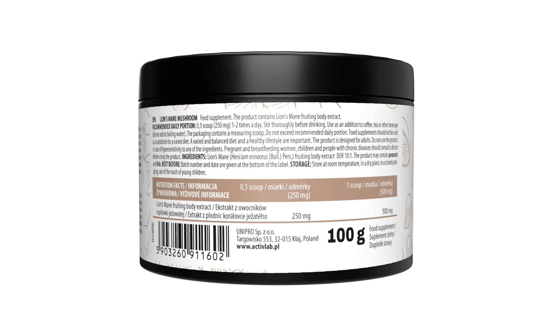 Extract from the fruiting bodies of lion’s mane mushroom (Hericium erinaceus (Bull.) Pers.) DER 10:1